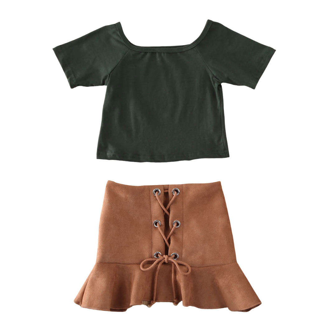 חצאית ז׳מש עם קשירות בצבע חום קאמל וגומי (להתאמה ונוחות מקסימלית)